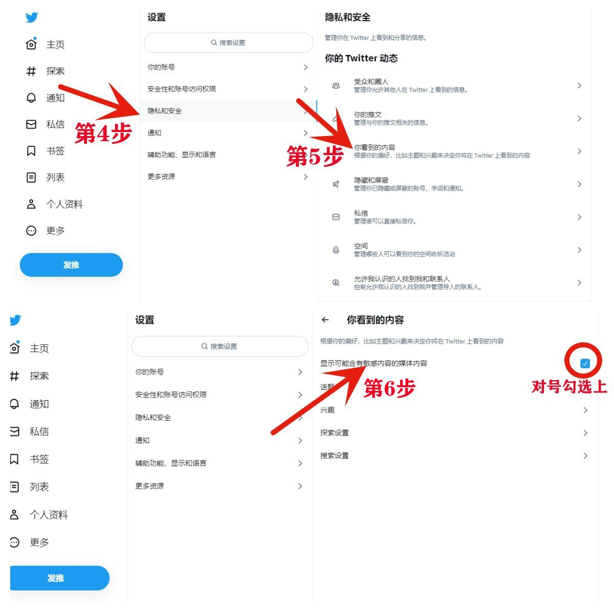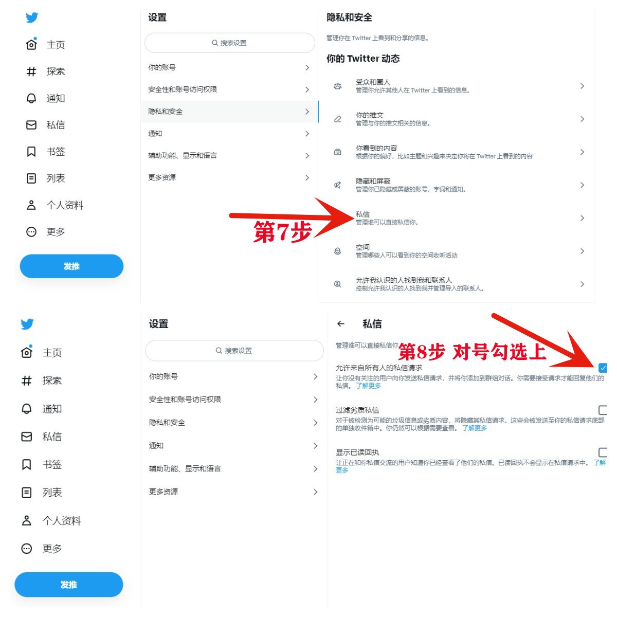 推特打开18+内容和私信功能教程